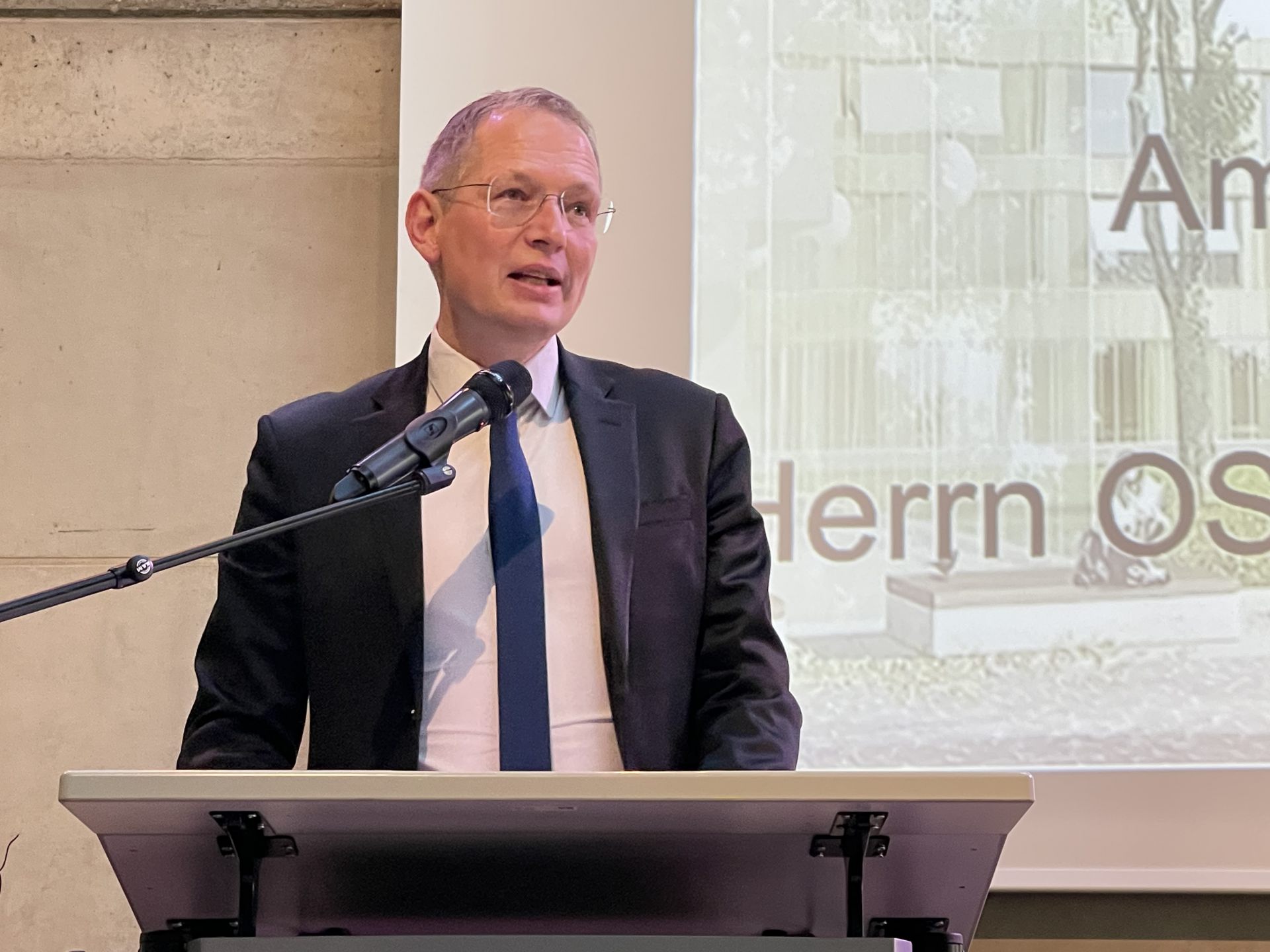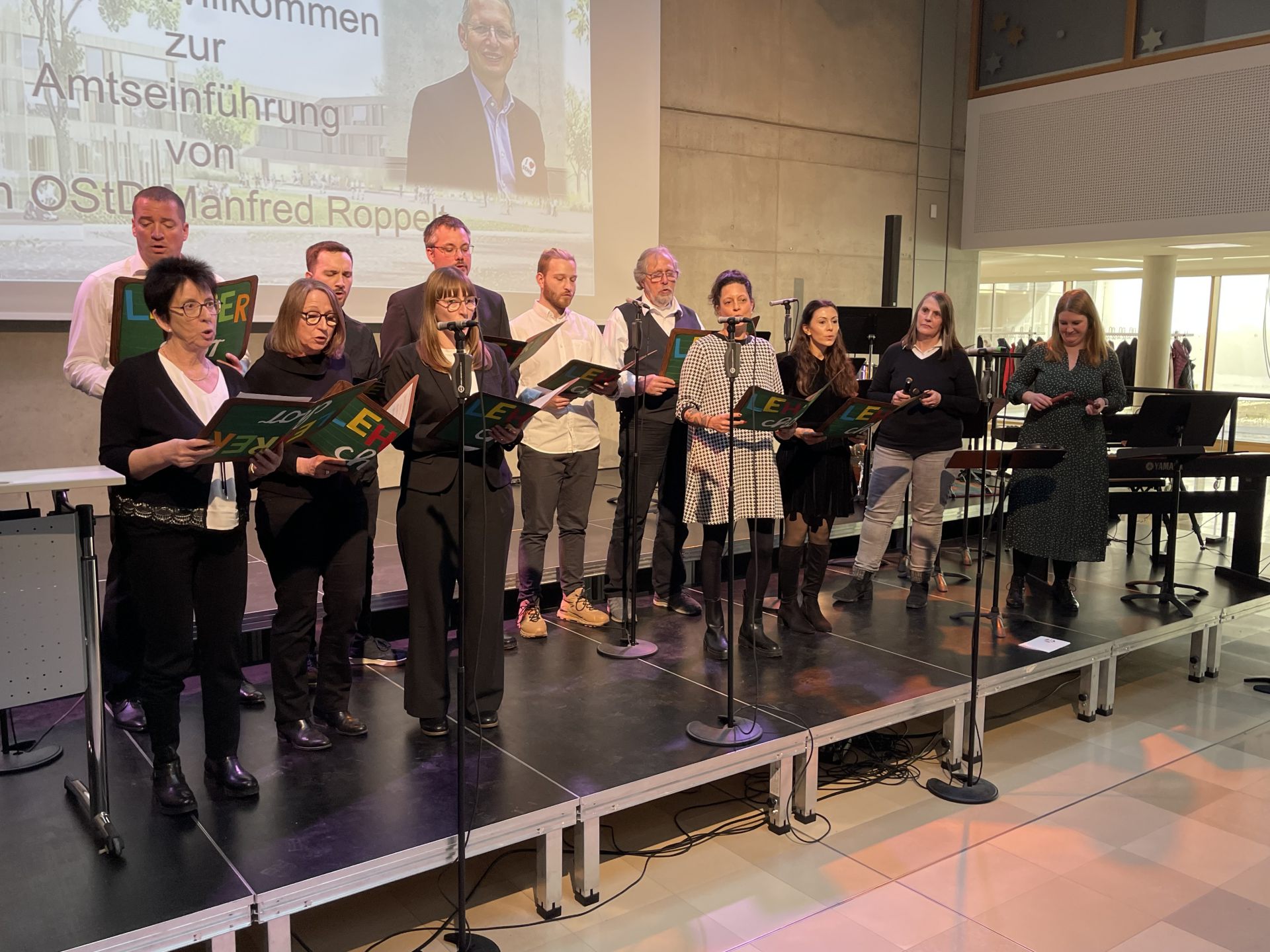 OStD Manfred Roppelt ließ sowohl in seiner Rede als auch in seinem Auftreten erkennen, dass er seinen Leitzsatz „Mach’s wie Gott – werde Mensch“ auf authentische Weise mit Leben erfüllt. So zollte er in seiner Rede neben seiner Familie seinen neuen und alten Kollegen Dankbarkeit, Respekt sowie Wertschätzung und betonte, dass man auch als Schulleiter nur „gemeinsam zum Ziel“ kommen könne.