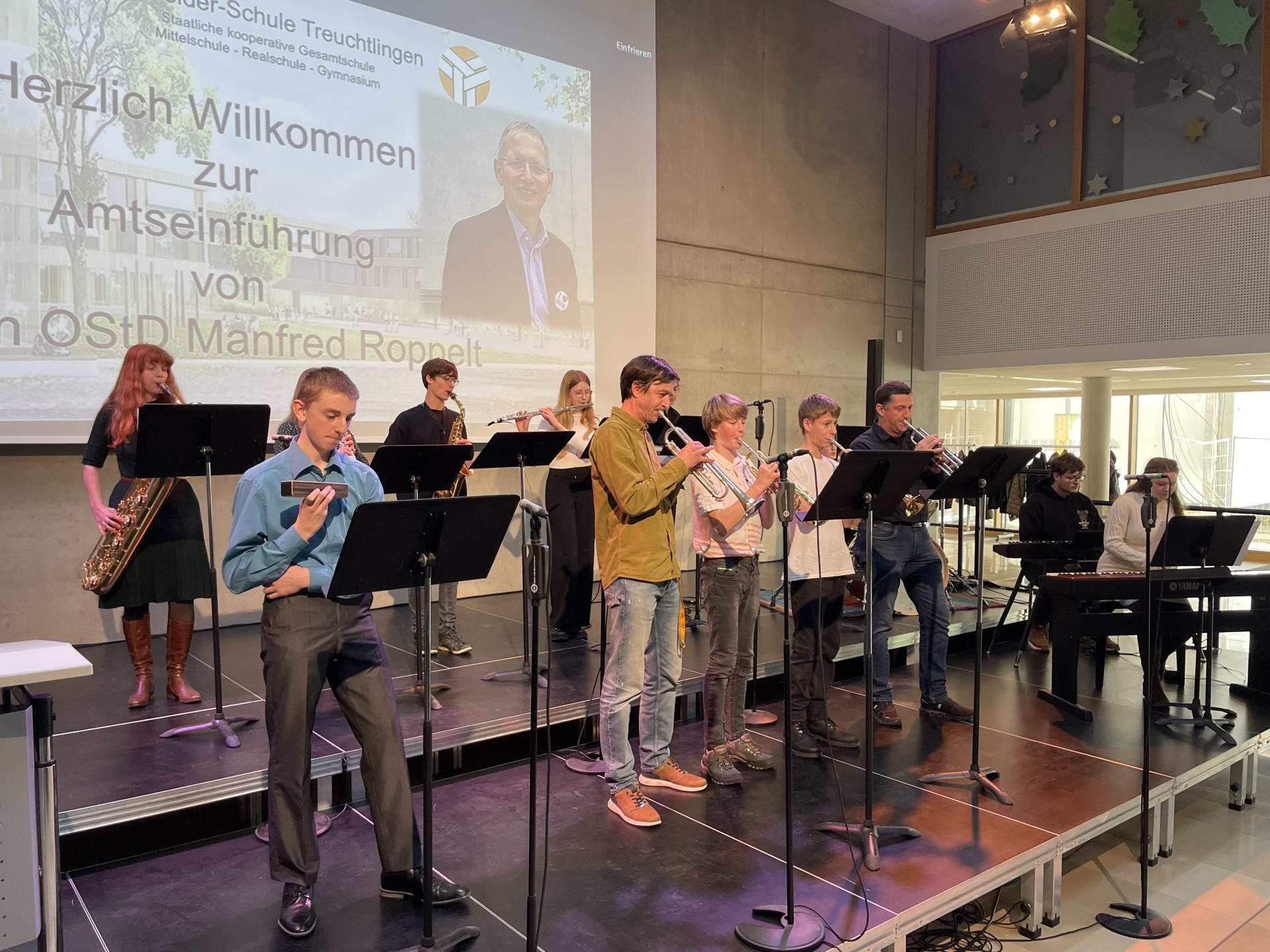 Umrahmt wurde die feierliche Einführung durch musikalische Beiträge des Schüler- und Lehrerchors, der Lehrerband sowie durch Soloeinlagen. Dabei stachen zwei Sechstklässlerinnen heraus, die „Das Privileg zu sein“ unter den staunenden Blicken des Publikums zum Besten gaben.