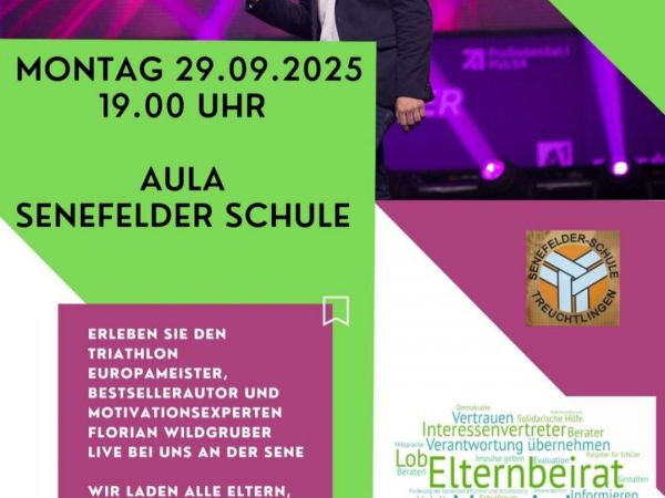 Erstmalig wagt sich unser Elternbeirat in Kooperation mit unserem Förderverein an eine größere Veranstaltung für Erwachsene. Erleben Sie Triathlon-Europameister und Bestsellerautor Florian Wildgruber live bei uns an der Sene.