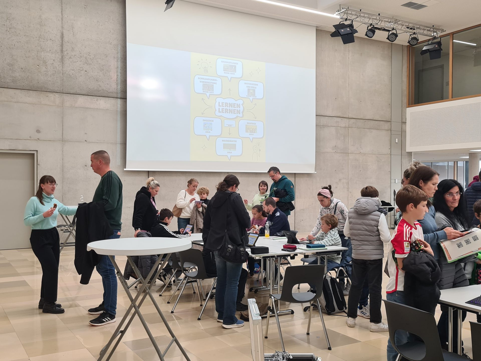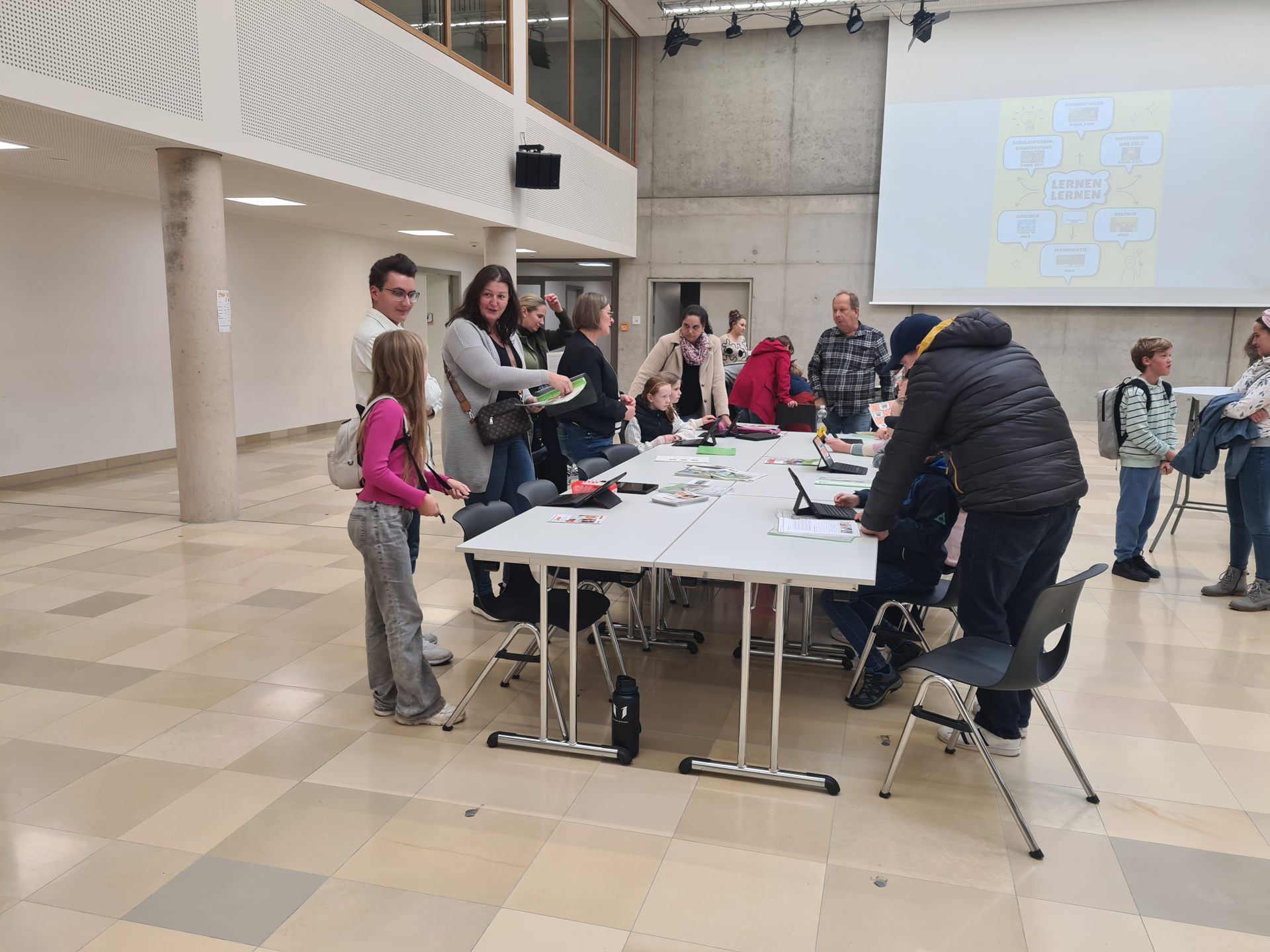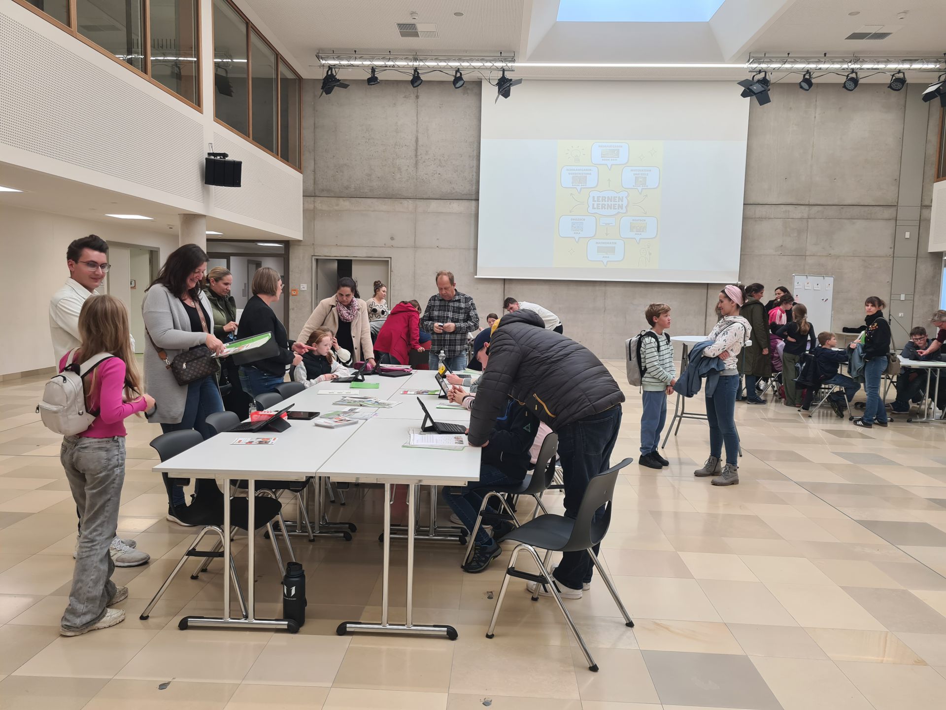 Darüber hinaus gab es noch weitere praktische Tipps für zielführende Strategien und Arbeitsweisen in den Fächern Deutsch und Mathematik sowie für die richtige Heransgehensweise ans (Vokabel)Lernen im Fach Englisch. Dabei konnten die Schülerinnen und Schüler ihre bisherigen Vorgehensweisen und Strategien hinterfragen und sich im Bedarfsfall neue Lernstrategien zurecht legen. Neben analogen Möglichkeiten wurde stets auch auf digitale Varianten eingegangen. Bei der gemeinsamen Bearbeitung von z.B. Relfexionsbögen zum Lernverhalten und zur Schulaufgabenvorbereitung konnten die Schülerinnen und Schüler zusammen mit ihren Eltern erkennen, wo die Auffassungen auseinander gehen, um den weiteren Lernprozess anzupassen.