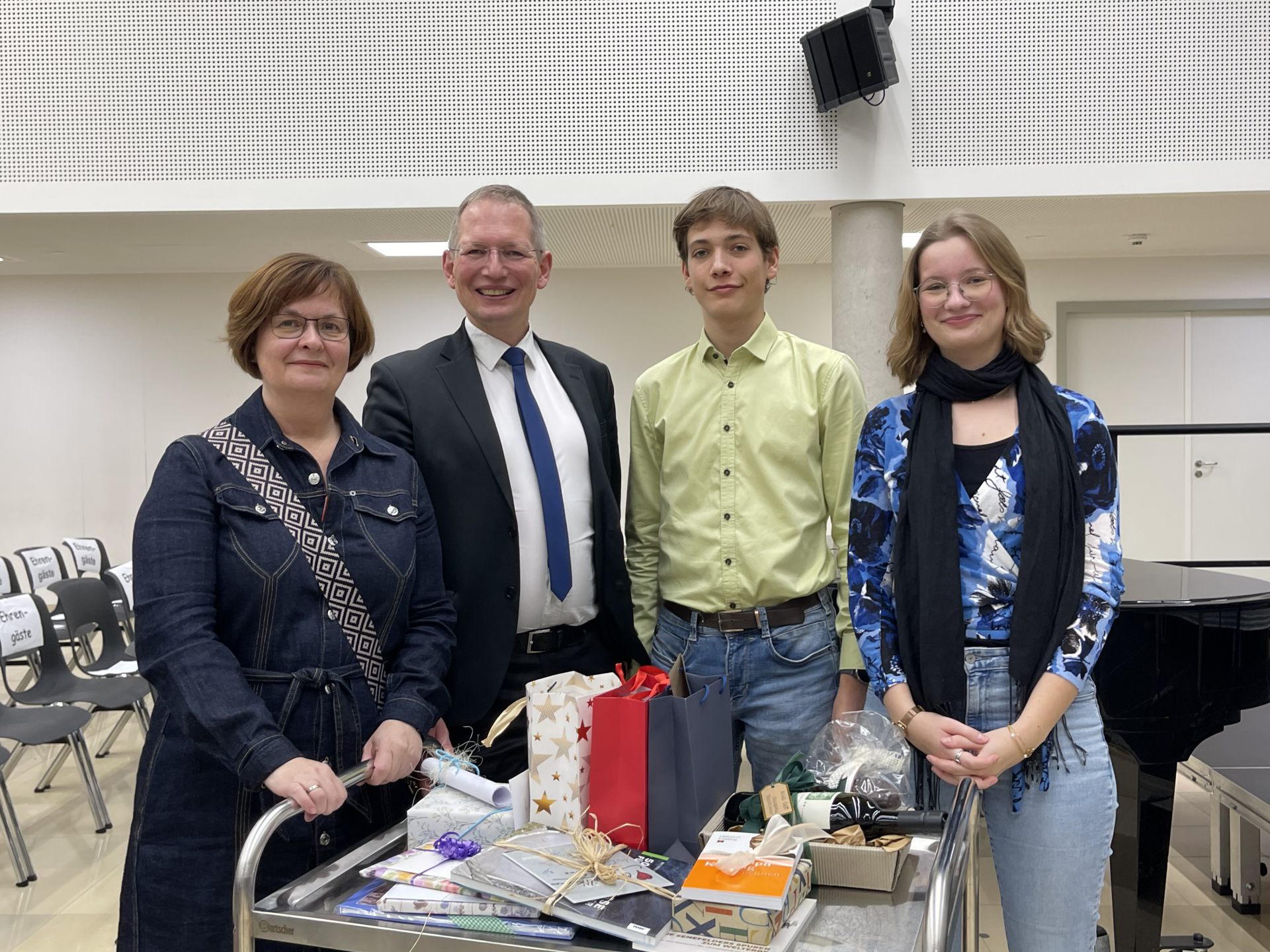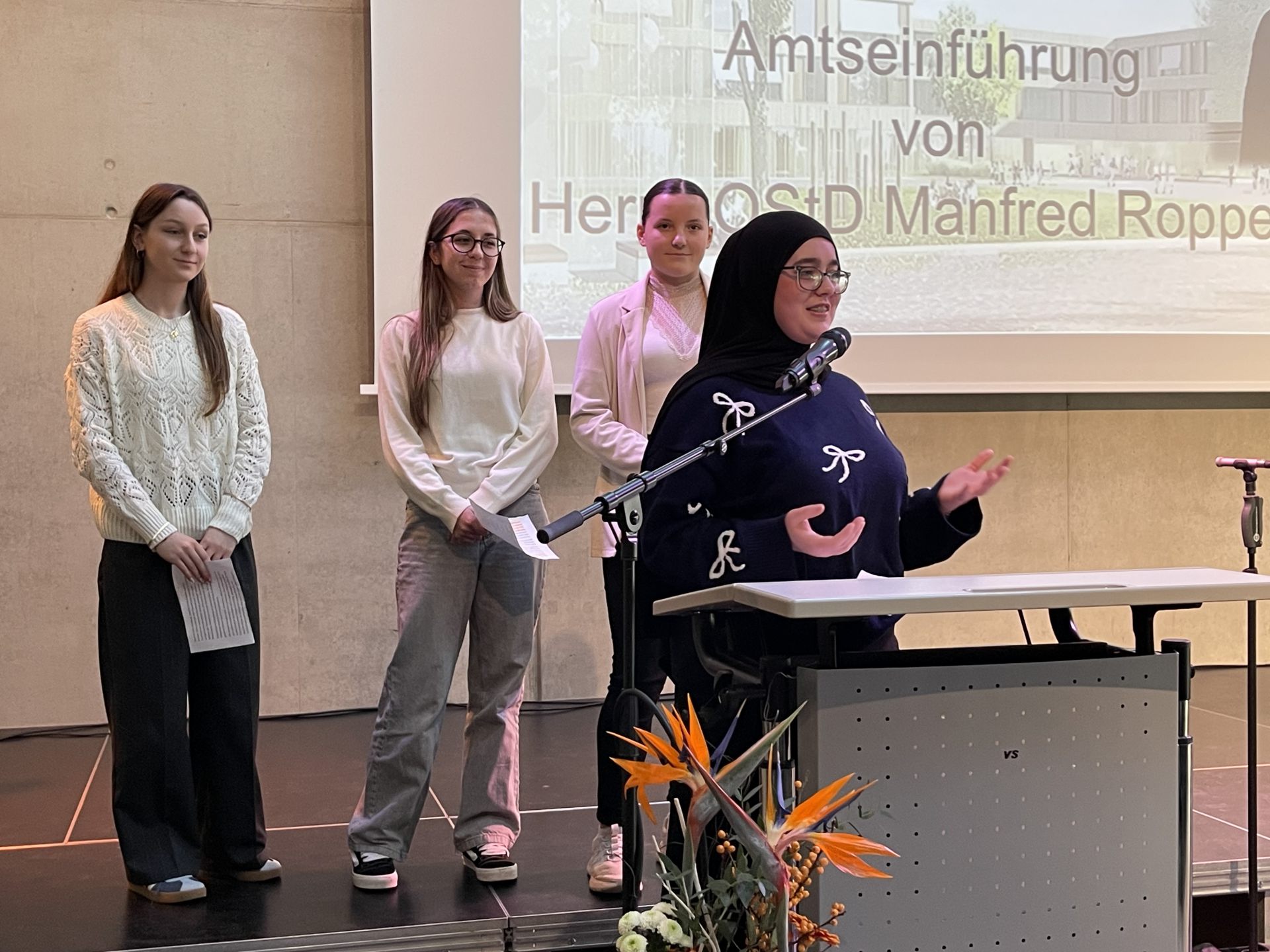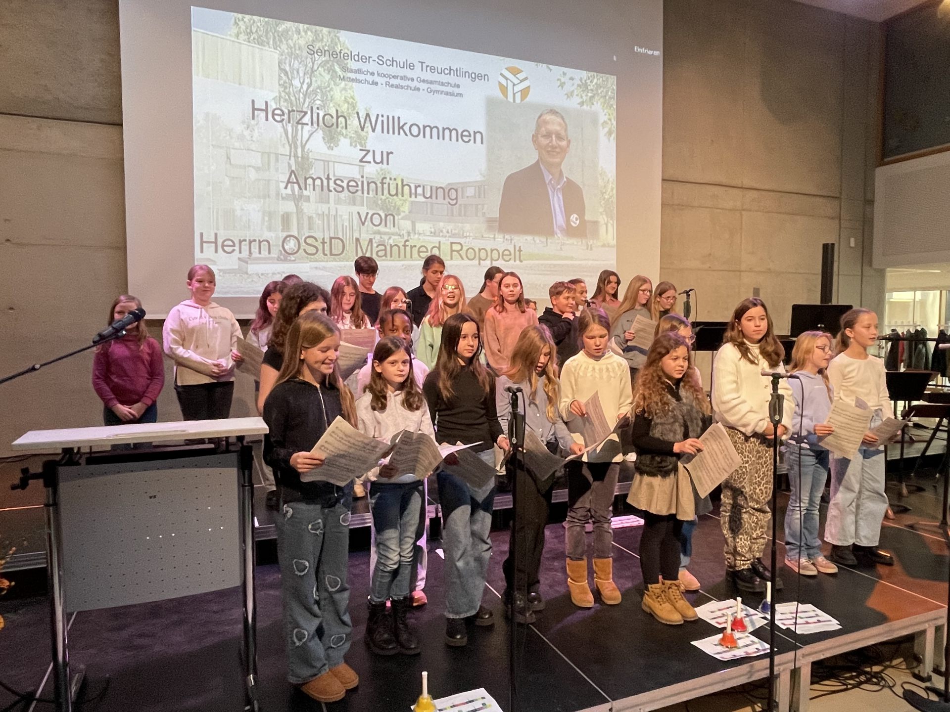 Umrahmt wurde die feierliche Einführung durch musikalische Beiträge des Schüler- und Lehrerchors, der Lehrerband sowie durch Soloeinlagen. Dabei stachen zwei Sechstklässlerinnen heraus, die „Das Privileg zu sein“ unter den staunenden Blicken des Publikums zum Besten gaben.