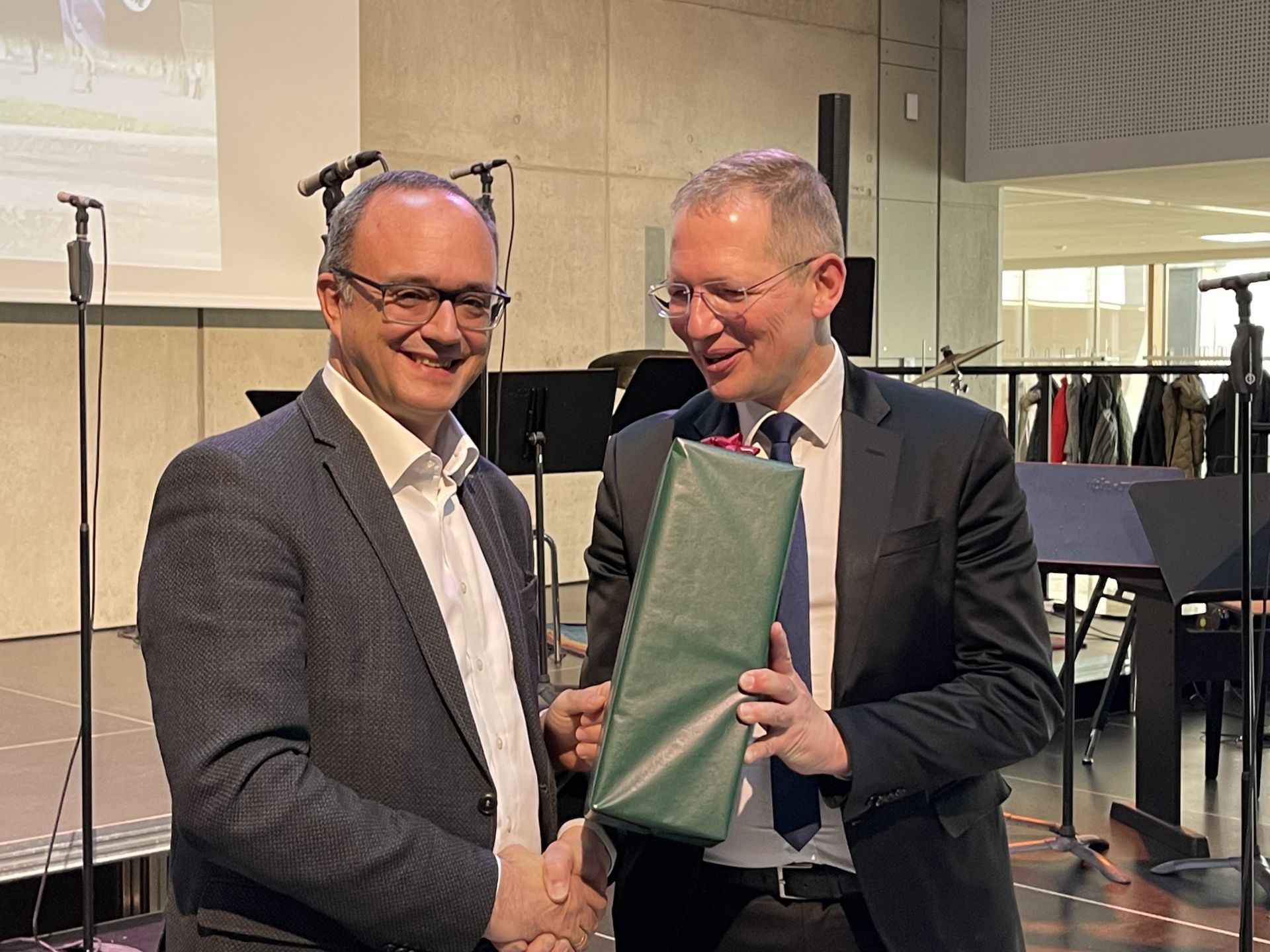 Dafür versammelten sich in der Aula des Neubaus neben der Familie des Schulleiters u.a. ehemalige und aktuelle Kollegen, der Vorsitzende des Zweckverbandes Landrat Manuel Westphal, die Bürgermeister des Zweckverbandes, der Ministerialbeauftragte für die Realschulen in Mittelfranken Michael Schmidt sowie die Ministerialbeauftragte für die Gymnasien in Mittelfranken Dr. Gabriele Kuen. Diese skizzierte in ihrer Rede den Weg, den Herr Roppelt als Schulleiter vor sich hat. Dieser verlaufe nicht immer gerade, sondern schlage auch mal Umwege ein, bevor er ans Ziel führe.